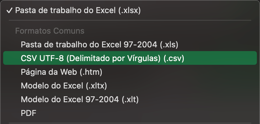 Observação: A planilha deve ter o formato CSV (separado por vírgulas).