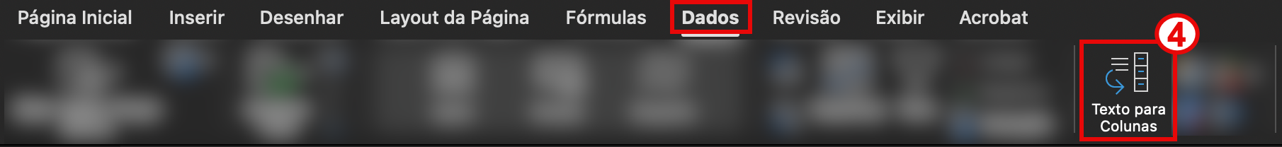 - No menu do Excel, clique em Dados -> Texto para Colunas;