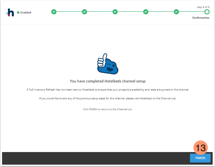 Se não conseguir concluir a conexão, confirme com o Hotelbeds que Cloudbeds foi selecionado como gerenciador de canais e que o ID da propriedade Hotelbeds foi inserido corretamente.