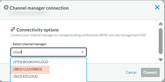 - Na extranet do Hotelbeds, selecione Cloudbeds como seu gerenciador de canais;