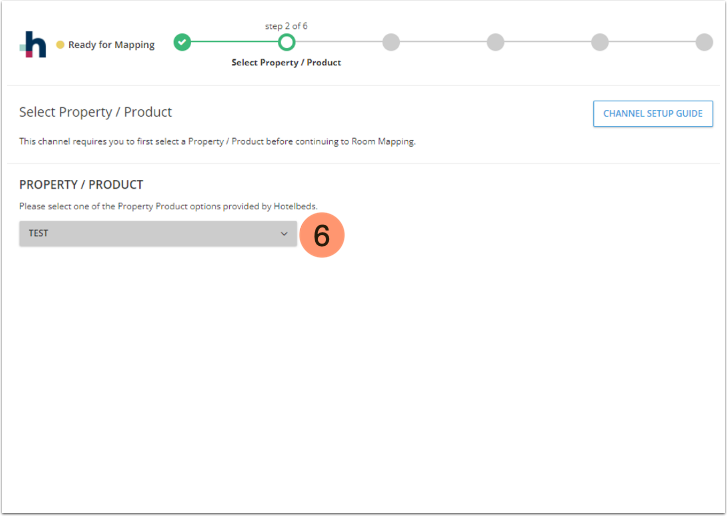 - Selecione sua Propriedade/Produto. Uma única conta no Hotelbeds pode ter múltiplas propriedades associadas; portanto, o PMS da Cloudbeds exige que você selecione sua propriedade antes;