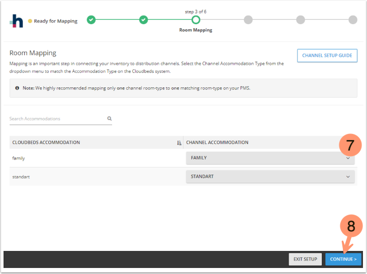 - Selecione os quartos do Hotelbeds no menu que correspondem ao tipo de acomodação no sistema da Cloudbeds;