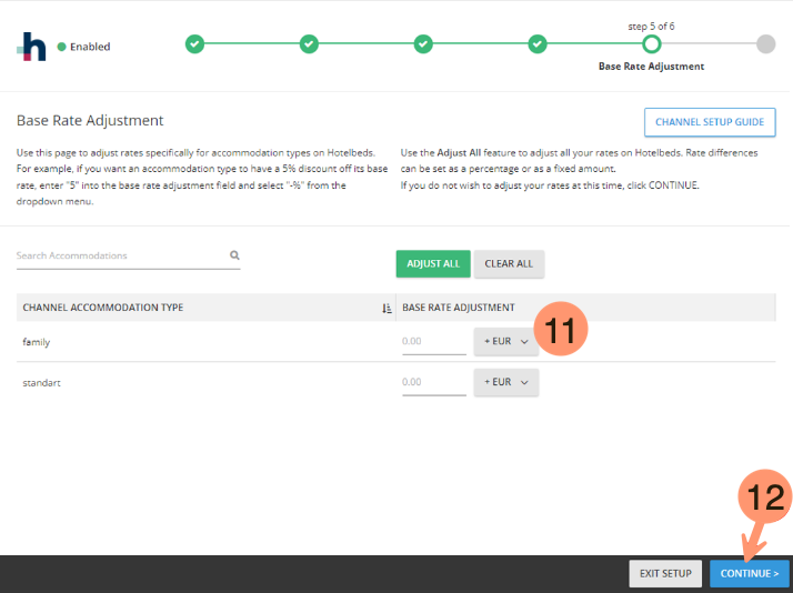 - Adicione um Ajuste de Tarifa Base para cada tipo de acomodação, se necessário, ou deixe zero para pular esta etapa;