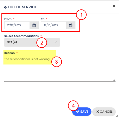 - Encontre a acomodação para bloquear as datas e marque as datas para fechar na linha Acomodação Bloqueada;