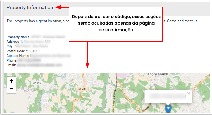 /* O código a seguir irá ocultar as informações da propriedade junto com o mapa */