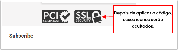 O seguinte código irá ocultar o logotipo de segurança de pagamento: