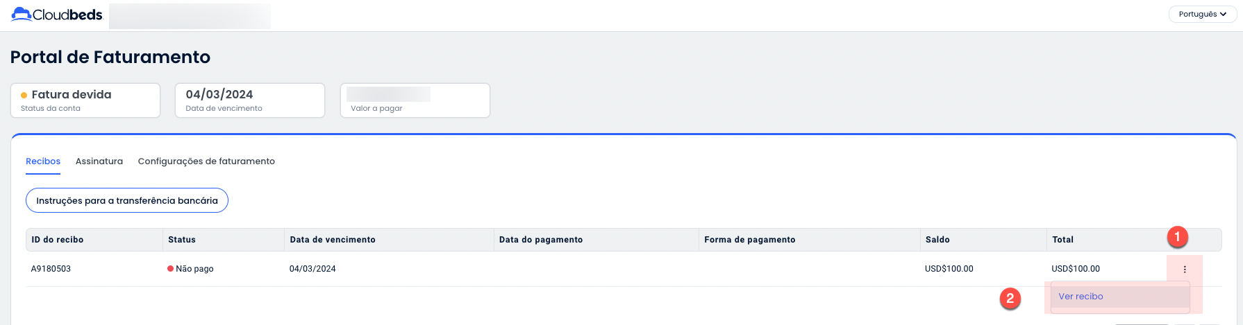 Ao acessar seu portal de faturamento, você verá a lista de recibos emitidos e a opção de visualizar cada um: