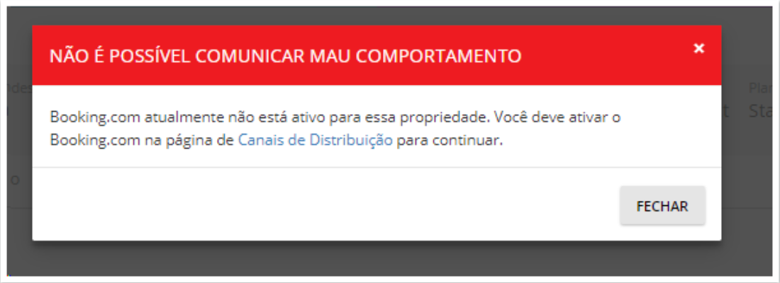 - A opção de relatar a má conduta do hóspede ao Booking.com será exibida independentemente dos status da reserva, no entanto, um erro impedindo o usuário de relatar a má conduta do hóspede será exibido quando: