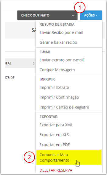 Para relatar má conduta do hóspede, abra a reserva associada ao hóspede infrator e siga os passos abaixo:
