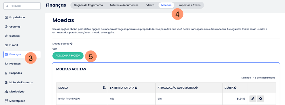 Se a sua moeda padrão não for a mesma que a moeda esperada, leia o tutorial a seguir para obter mais detalhes: Como alterar a moeda principal no PMS da Cloudbeds?