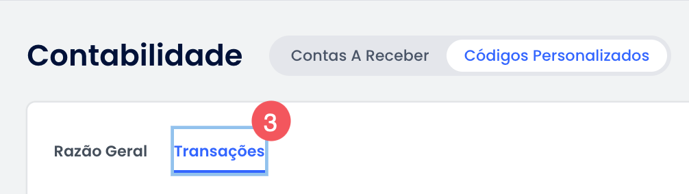 É possível alternar facilmente entre as páginas "Transações" e "Razão Geral" na parte superior da página.