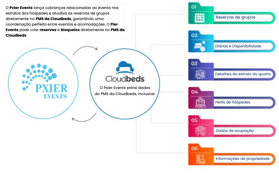 • Integração total com a plataforma da Cloudbeds: Beneficie-se de reservas de grupos sem problemas, geração de propostas personalizadas, cronograma eficiente de alimentos e bebidas e processamento simplificado de pagamentos.