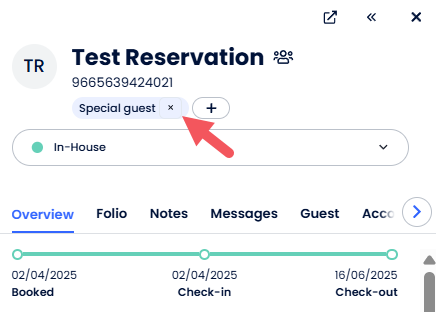 - Clique em Salvar. O rótulo irá aparecer logo abaixo do nome do hóspede.