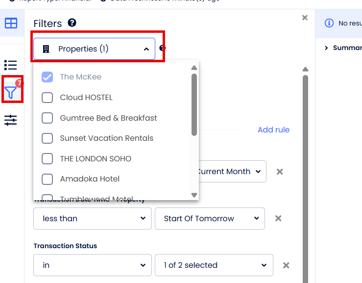 Filtrando dados por propriedade no Cloudbeds Insights