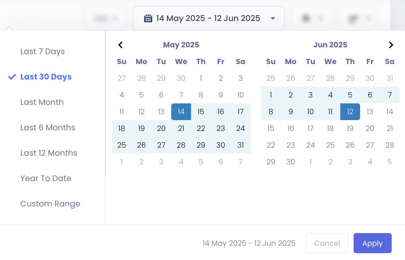 - Selecione seu intervalo de datas preferido nas opções predefinidas usando o "Seletor de Intervalo de Datas" para analisar dados de diferentes intervalos de datas históricas.
