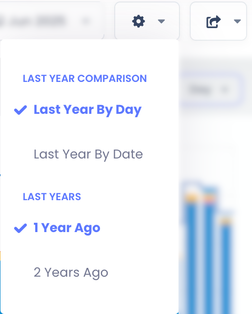 - Último Ano por Dia: Opção padrão, comparando dia a dia (por exemplo, segunda-feira com a segunda-feira mais próxima do ano passado).