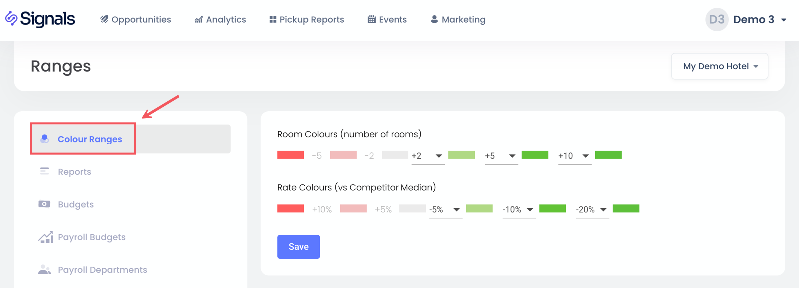 Esses podem ser personalizados por hotel, para limites métricos de quartos e limites percentuais de tarifas.