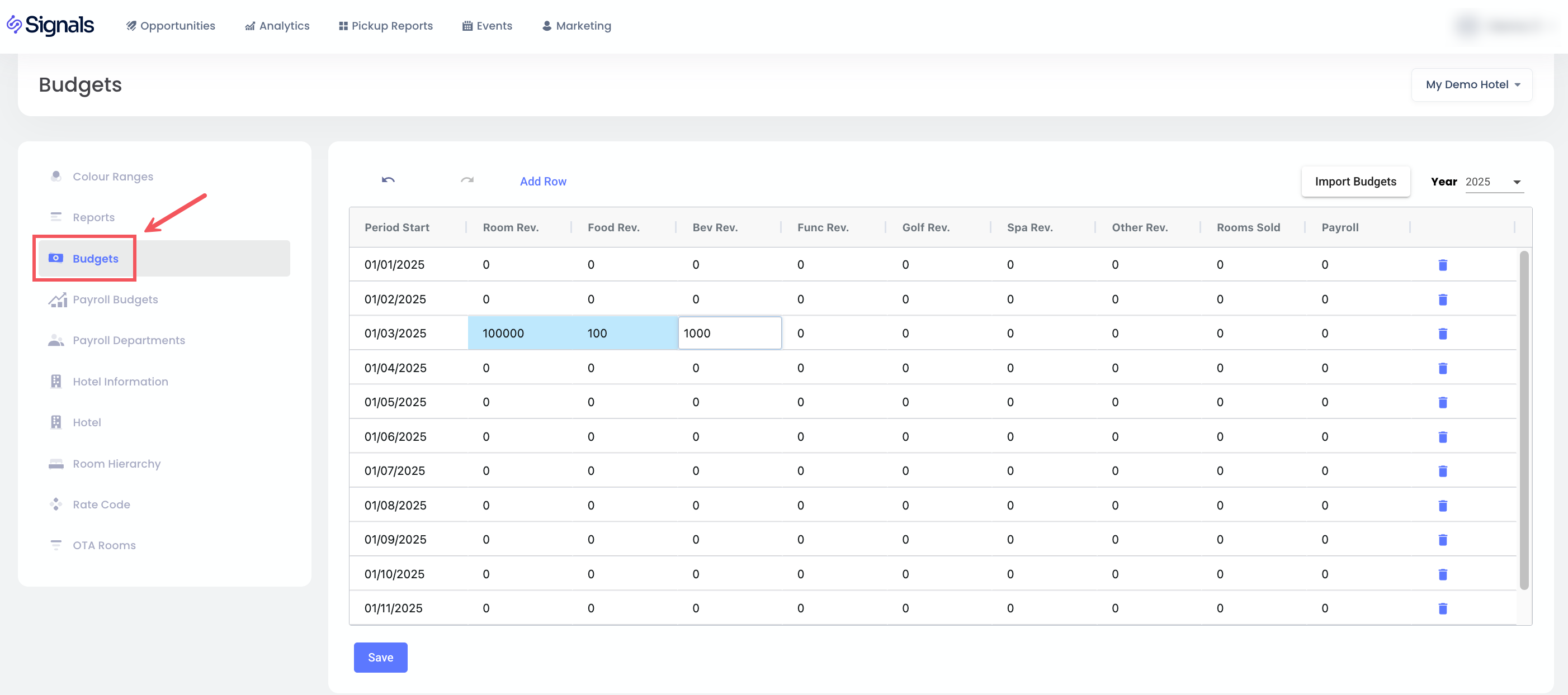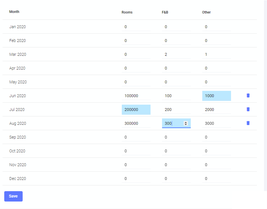 Basta selecionar o hotel e o ano, em seguida, você pode clicar em cada caixa de texto e editar os orçamentos necessários: