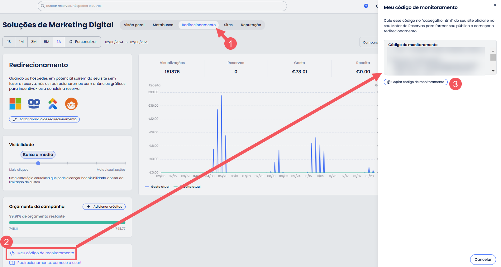 - Coloque seu script de monitoramento (código) em seu site: A adição do script de monitoramento ao seu site aumentará as visualizações do seu anúncio de redirecionamento e melhorará o monitoramento do seu anúncio para que possamos mostrar todas as reservas que o Redirecionamento ajudou a criar.