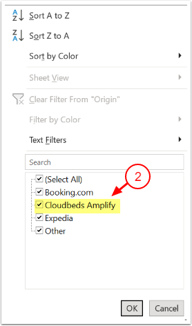 - Filtre para Marketing Digital (Cloudbeds Amplify). Todas as reservas dessa origem no período selecionado serão listadas.
