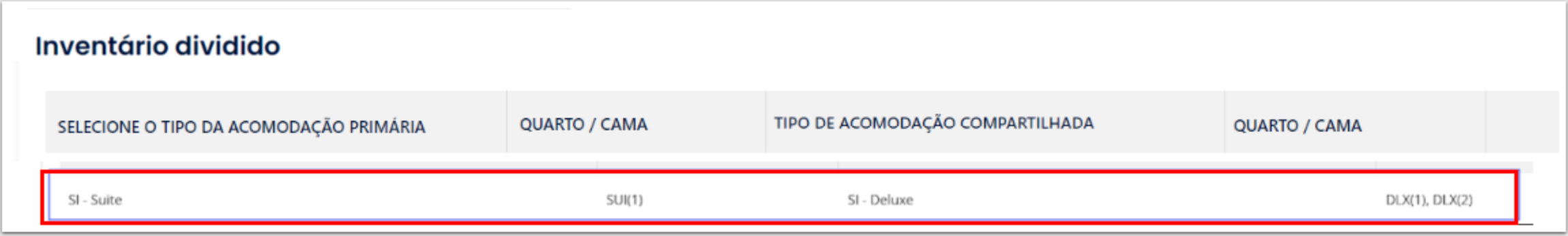Ao configurar o Inventário Dividido, você pode se perguntar se é possível combinar quartos privativos (como quartos Standard ou Suítes) e acomodações compartilhadas (como dormitórios ou espaços com camas) em um único quarto virtual.