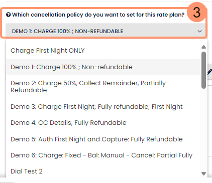 - Role para baixo até o campo Cancelamento (Qual política de cancelamento você deseja definir para este plano tarifário?) e selecione a Política que você deseja designar no menu de Políticas;