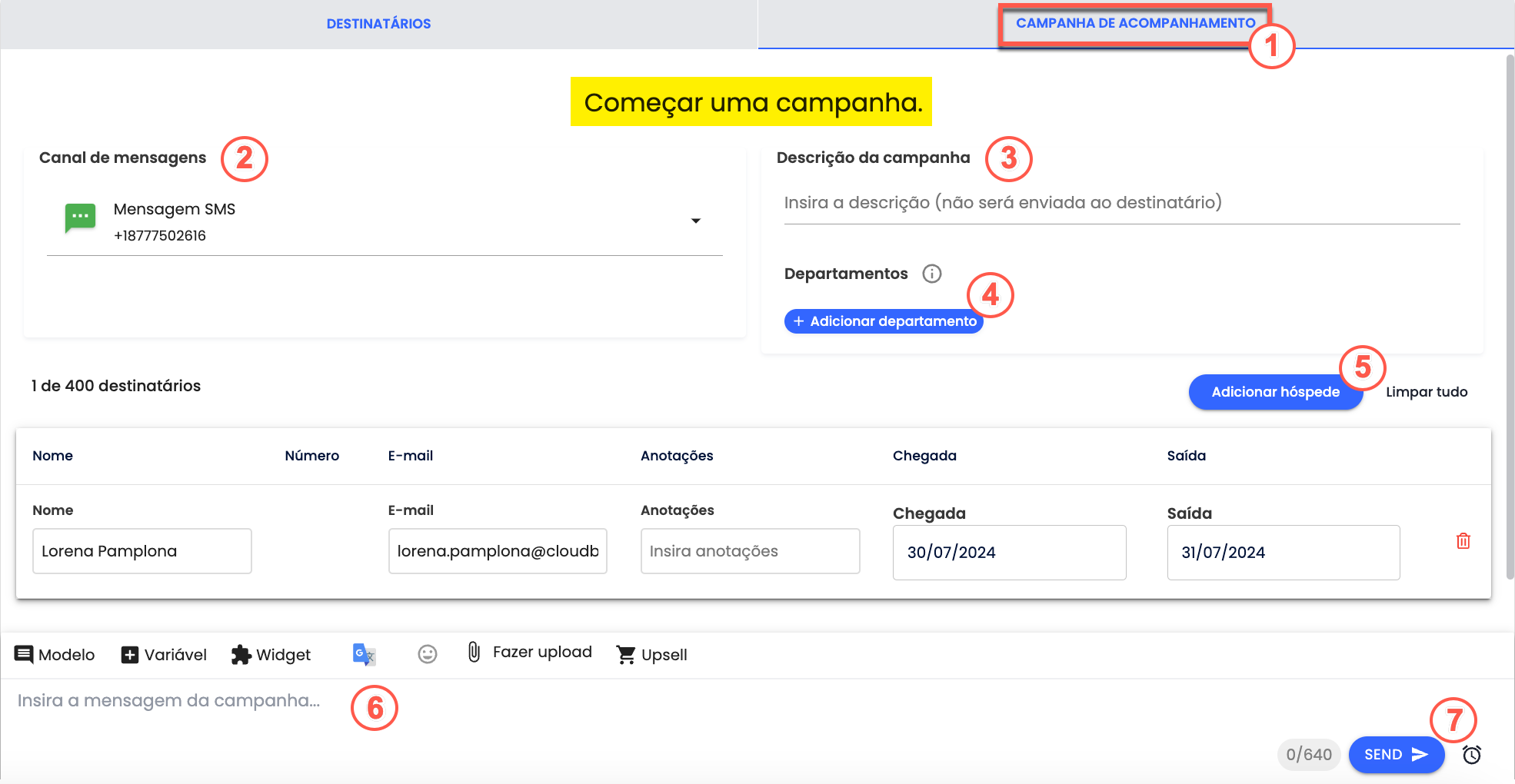 - Adicione hóspedes à lista de destinatários;