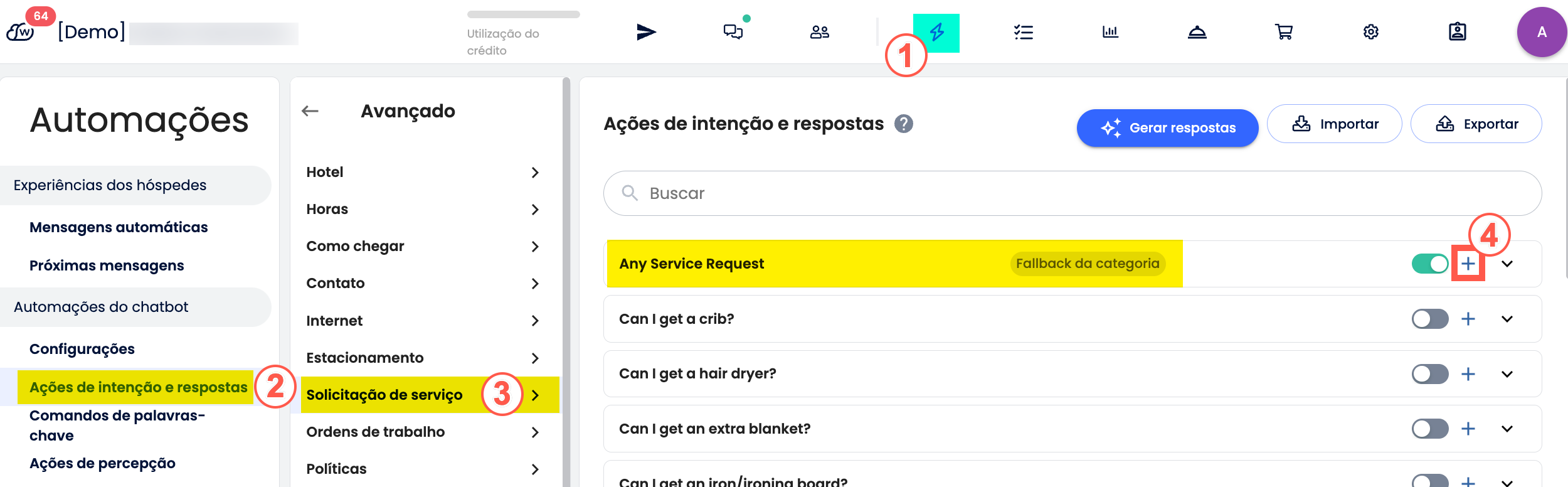 - Clique no sínal de "+" ao lado de Qualquer solicitação de serviço - fallback da categoria: