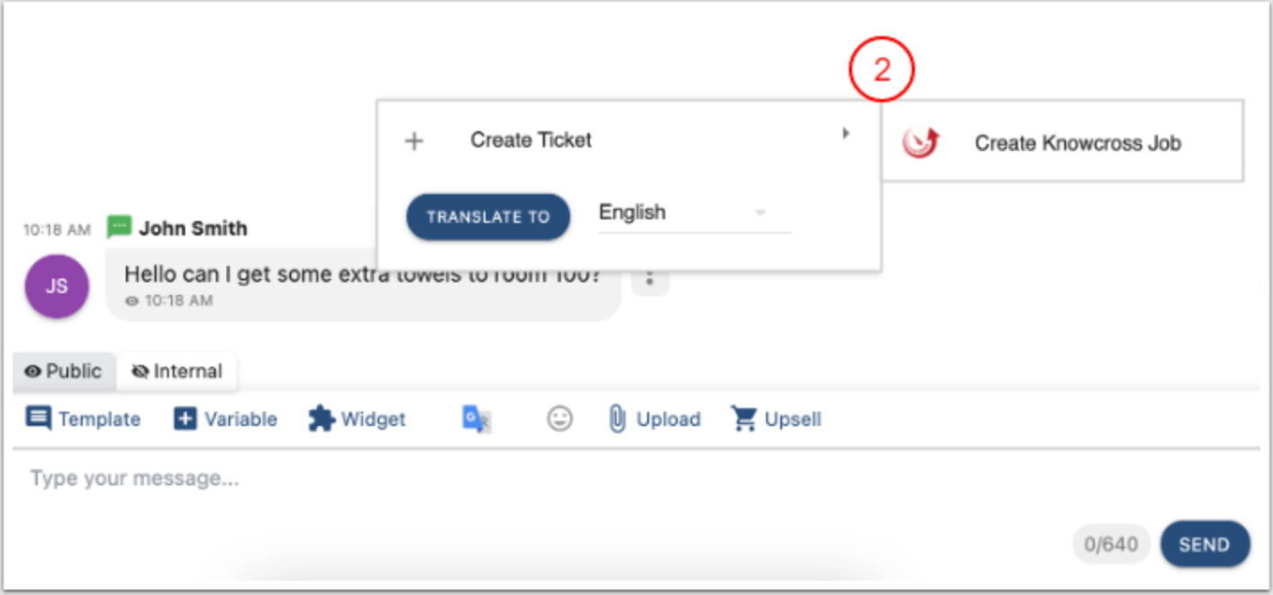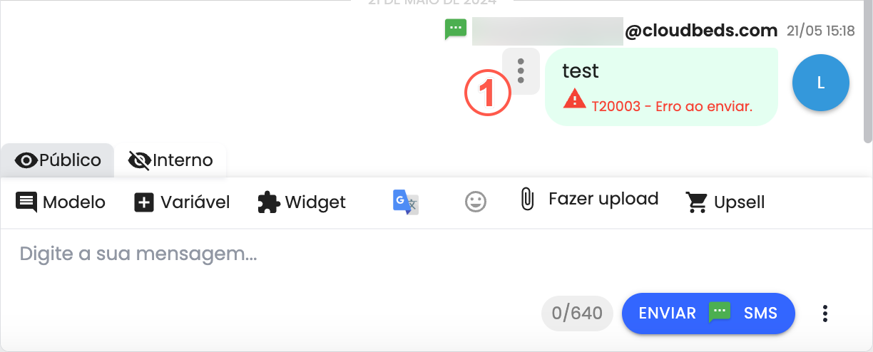- Na mensagem com o hóspede, clique o ícone de 3 pontos para enviar a tarefa;