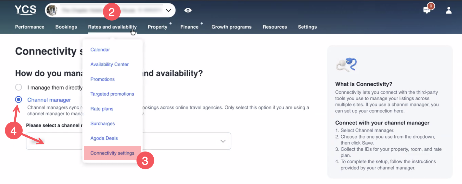 - การเปิดใช้งาน Channel Manager ในเอกซ์ทราเน็ตของ Agoda เป็นสิ่งจำเป็น (ขั้นตอนที่ 2): การกระทำนี้จำเป็นต้องทำก่อนที่ Cloudbeds จะสามารถเปิดใช้งานช่องทางได้