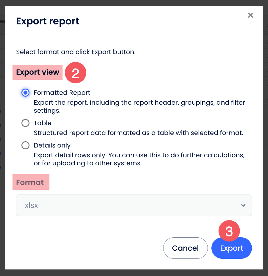 • รายงานที่จัดรูปแบบ: ส่งออกรายงานพร้อมส่วนหัว การจัดกลุ่ม และการตั้งค่าตัวกรอง