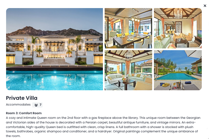 ฟีเจอร์นี้ช่วยเพิ่มประสบการณ์ผู้ใช้งานโดย เน้นข้อเสนอที่เอกลักษณ์เฉพาะ และ แสดงรายการห้องพักทั้งหมด ของที่พักของคุณ: