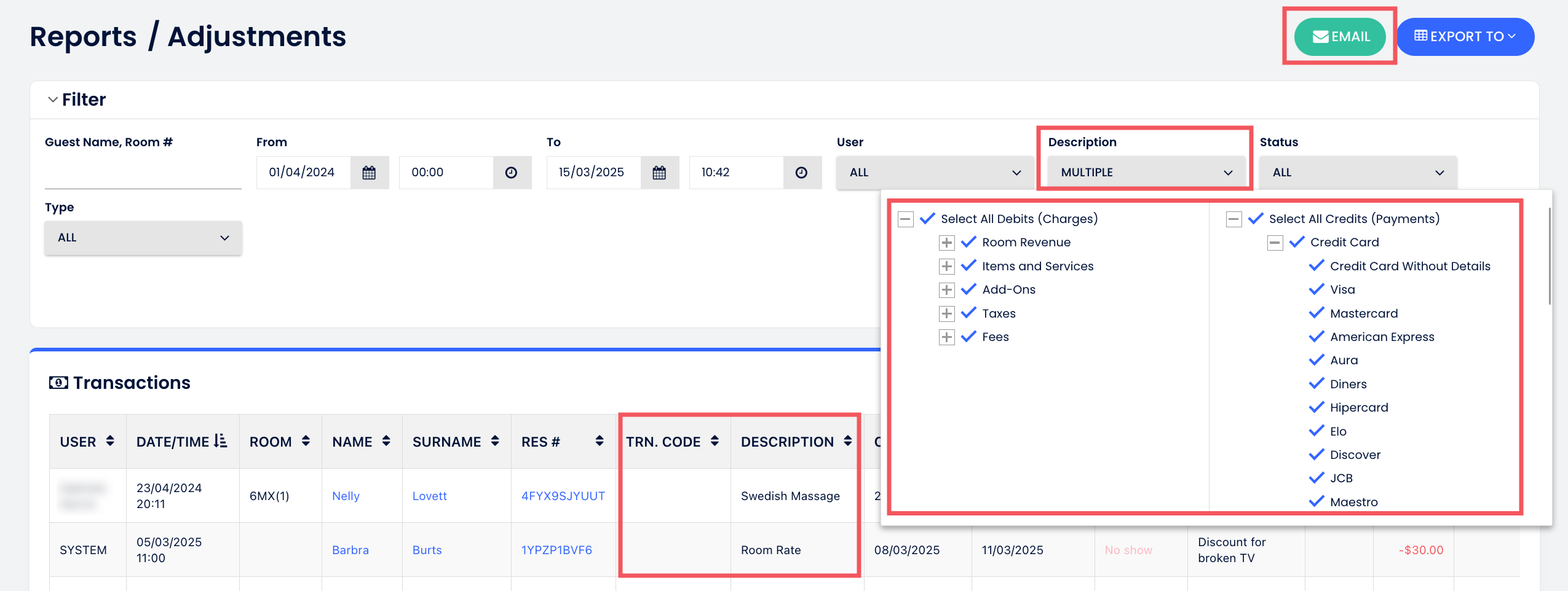 - ข้อมูลธุรกรรมจะถูกดึงมาจาก บริการบัญชีใหม่ ซึ่งมีรายละเอียดมากขึ้นและสอดคล้องกับมาตรฐาน USALI ธุรกรรมไม่สามารถเปลี่ยนแปลงได้ การยกเลิกมีธุรกรรมที่เท่าเทียมและตรงข้าม