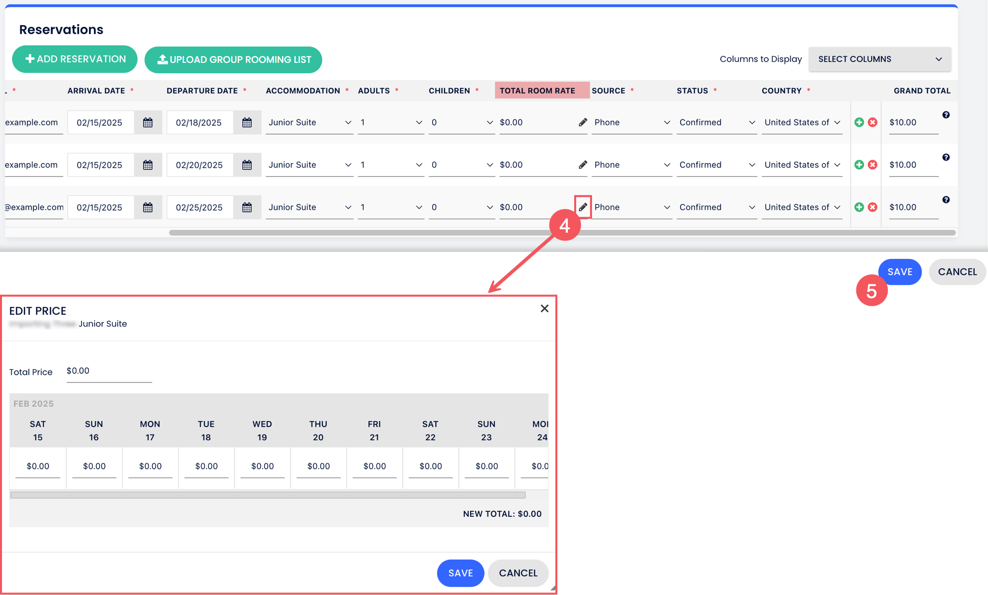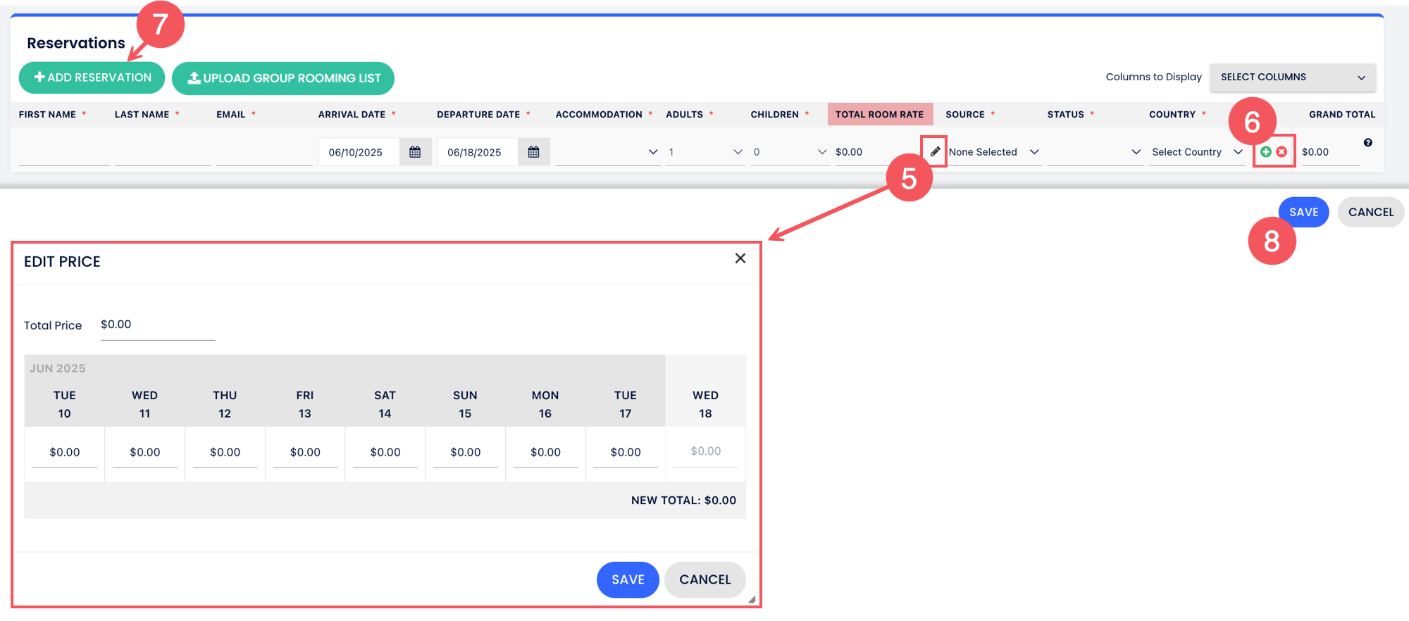 - หากอัตราห้องพักในแต่ละคืนแตกต่างกัน คลิกที่ ไอคอนดินสอ (แก้ไข) บน ช่องอัตราห้องพักทั้งหมด เพื่อแก้ไขอัตราสำหรับแต่ละวัน บันทึก การเปลี่ยนแปลง.