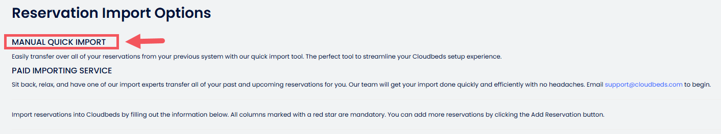 บทความนี้อธิบายกระบวนการนำเข้าการจองโดยใช้ เครื่องมือการนำเข้าอย่างรวดเร็ว ใน Cloudbeds PMS