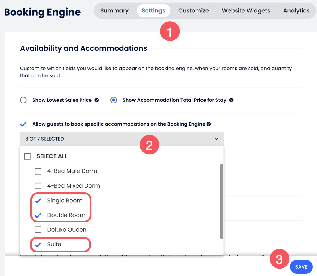 สิ่งนี้จะช่วย ป้องกันข้อผิดพลาด ในเครื่องมือจอง ตัวอย่างเช่น หากลูกค้าของคุณ เพิ่มหลายประเภทห้องที่เชื่อมโยงกันในตะกร้าสินค้า การเปิดใช้งานตัวเลือกนี้จะบล็อกประเภทห้องที่เชื่อมโยงกันอื่น ๆ ไม่ให้เพิ่มในตะกร้าเมื่อมีการเลือกไว้แล้ว