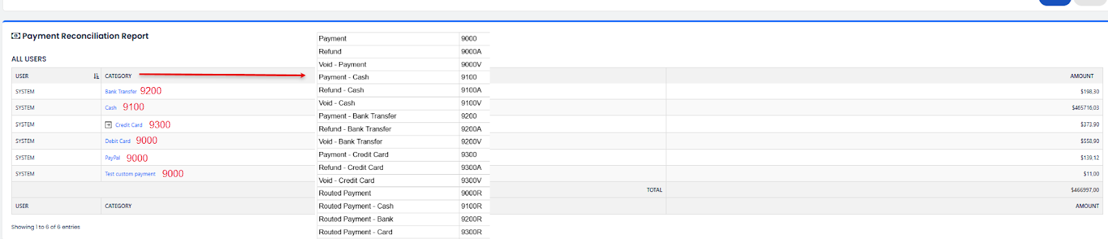 รายงานนี้แยกการชำระเงินตามหมวดหมู่และผู้ใช้งาน แต่ดึงรหัสการชำระเงินเท่านั้น มีการจัดกลุ่มดังนี้: