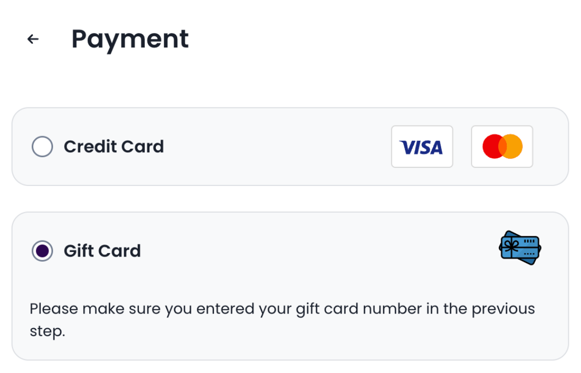 - การรองรับ บัตรของขวัญ ต้องการการเพิ่ม ช่องทางของแขกที่กำหนดเอง เพื่อใส่หมายเลขบัตรของขวัญ