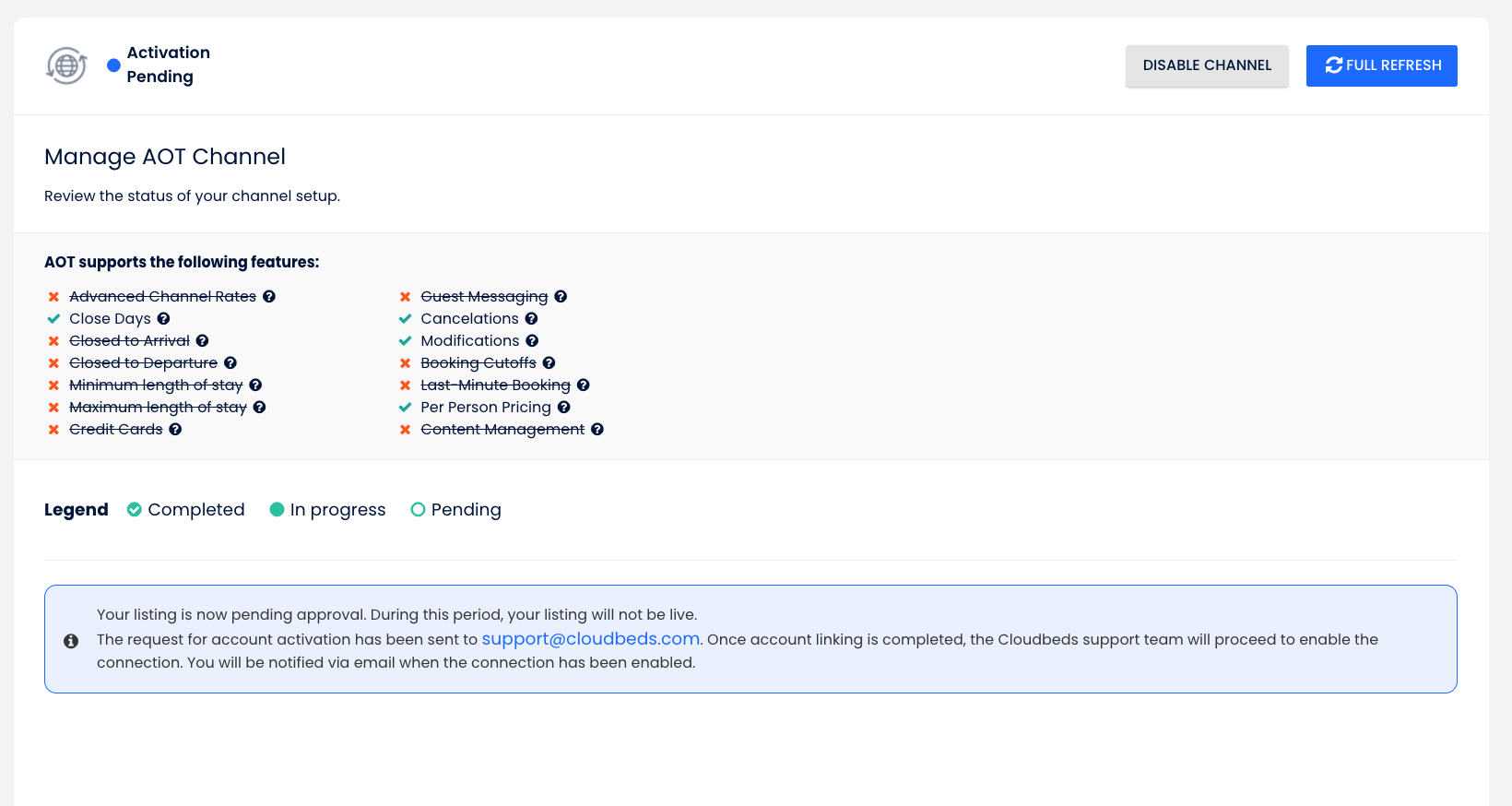 แตกต่างจากช่องทางมาตรฐานเช่น Booking.com, ช่องทาง AOT, Flight Centre, Klook, Pitchup และ Qantas ไม่ รองรับกระบวนการแม็ปอัตราแบบดั้งเดิม ซึ่งแผนราคา Cloudbeds จะเชื่อมโยงโดยตรงกับแผนราคาช่องทางที่เกี่ยวข้อง.