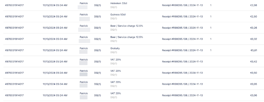 แต่ละธุรกรรมเหล่านี้จะปรากฏอย่างแยกต่างหากบนใบแจ้งรายการ ซึ่งมอบการแจกแจงที่ชัดเจนของค่าใช้จ่าย:
