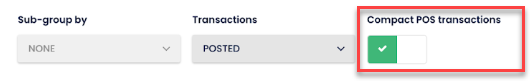 - โหมดคอมแพ็ค รวมธุรกรรมทั้งหมดจากเช็ค POS แต่ละรายการเป็นหนึ่งบรรทัดสำหรับการแสดงผลและการพิมพ์