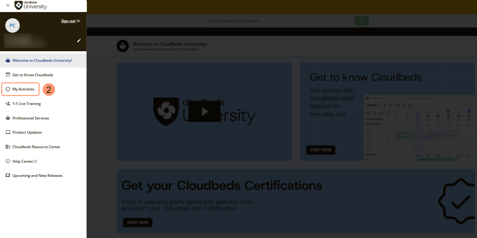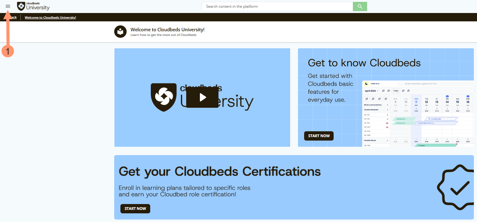 - ไปที่ เมนูหลัก ของ Cloudbeds University