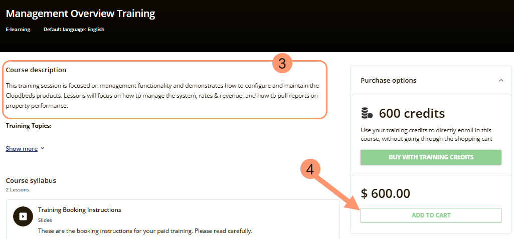 เครดิตของ Cloudbeds University สามารถใช้บนแพลตฟอร์มเพื่อซื้อการฝึกอบรม บริการ หรือผสมผสานทั้งสองอย่าง ทำตามขั้นตอนด้านล่างเพื่อใช้เครดิตของคุณหรือทำการซื้อ: