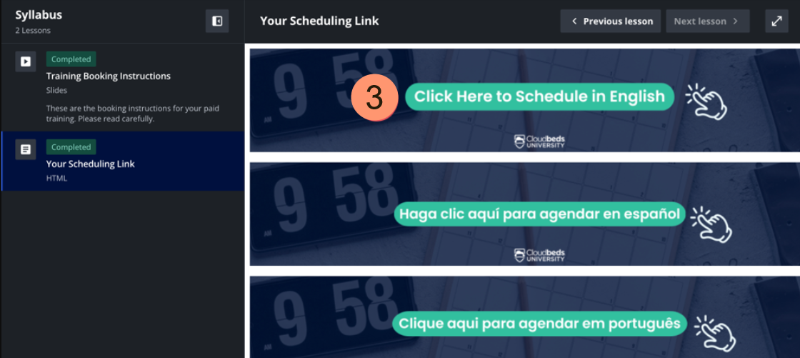 1. ใน Cloudbeds University ไปที่ส่วน 1:1 Live Training (หรือ Professional Services)