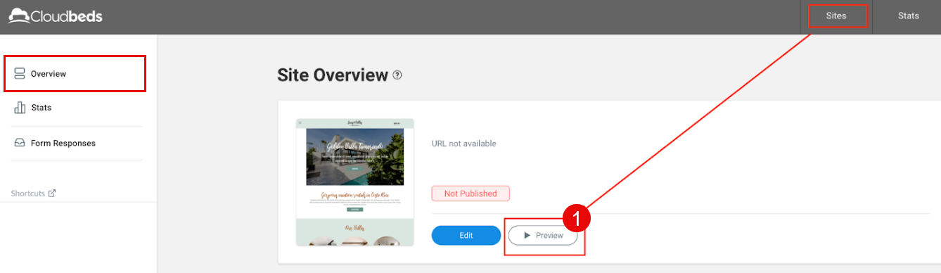 หากคุณได้ขอ เว็บไซต์หลายภาษา ตัวเลือกดูตัวอย่าง จะไม่ ที่มีในช่วง การรีวิวเบื้องต้น นี้