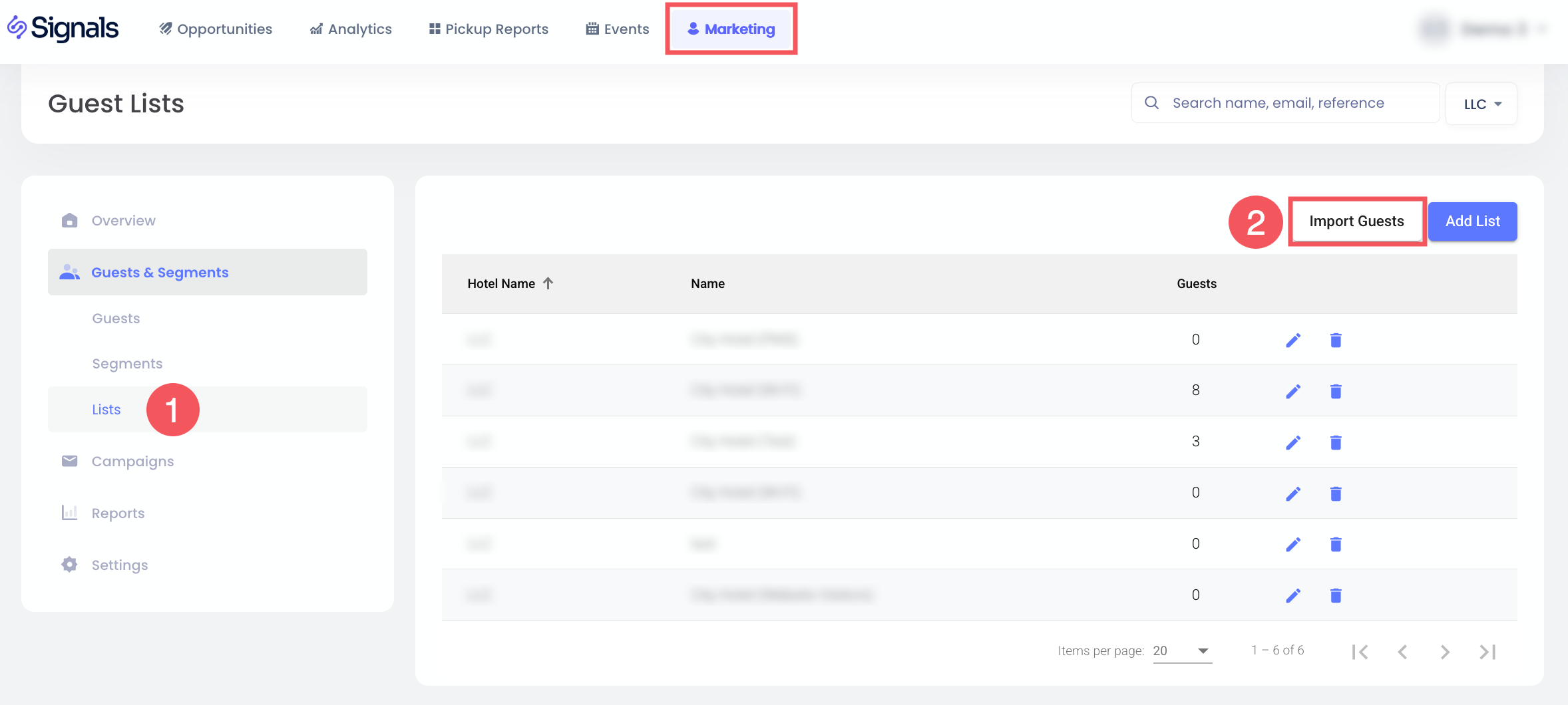 - จากแท็บ การตลาด, ไปที่ แขกและกลุ่ม และคลิกที่ส่วน รายการ