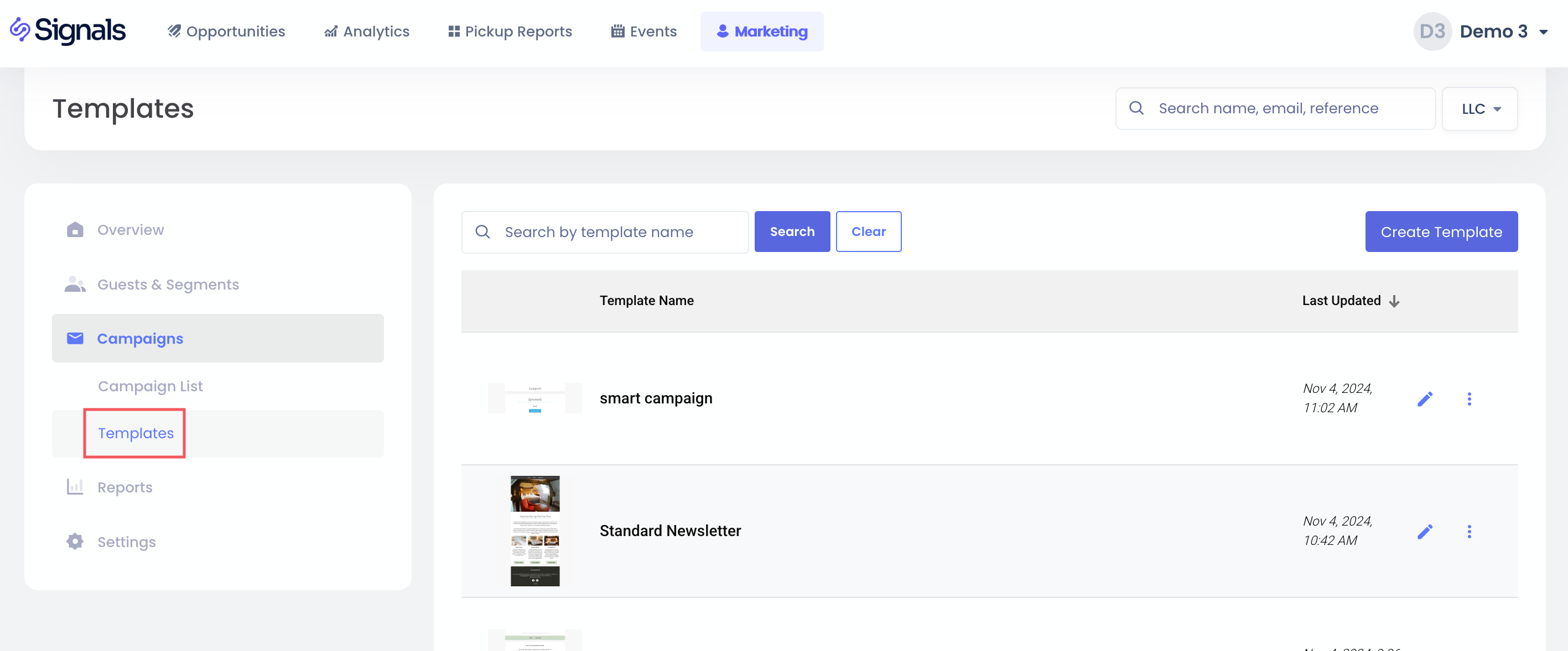 หากคุณต้องการสร้างเทมเพลตสำหรับที่พักของคุณที่คุณสามารถนำมาใช้ซ้ำได้ ส่วน แคมเปญ > เทมเพลต ช่วงอนุญาตให้คุณเพิ่มเทมเพลตใหม่ได้อย่างง่ายด้วยปุ่ม สร้างเทมเพลต