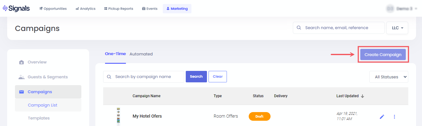 - แคมเปญที่มีอยู่ - เฉพาะรวมผู้เข้าพักที่ได้รับ/ไม่ได้รับ อ่าน คลิก ถูกส่งอีเมลแคมเปญเฉพาะตั้งแต่เวลาที่กำหนด