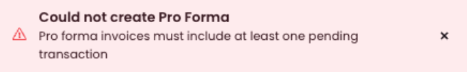 คุณสามารถดูธุรกรรมที่รอดำเนินการได้เฉพาะเมื่อคุณเลือกที่จะสร้างใบแจ้งหนี้ Pro Forma เท่านั้น ธุรกรรมเหล่านี้จะไม่ปรากฏเป็นตัวเลือกเมื่อสร้างใบแจ้งหนี้มาตรฐาน