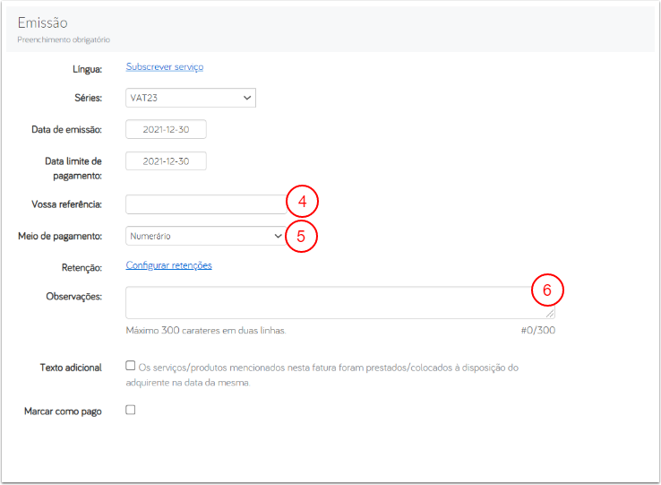 หลังจากที่สิ้นสุดเอกสาร เลขที่ใบแจ้งหนี้จะถูกมอบหมาย และลายน้ำ Em preparação (อยู่ในขั้นตอนการเตรียม) จะถูกลบออก ไม่สามารถทำการเปลี่ยนแปลงเพิ่มเติม ได้หลังจากขั้นตอนนี้